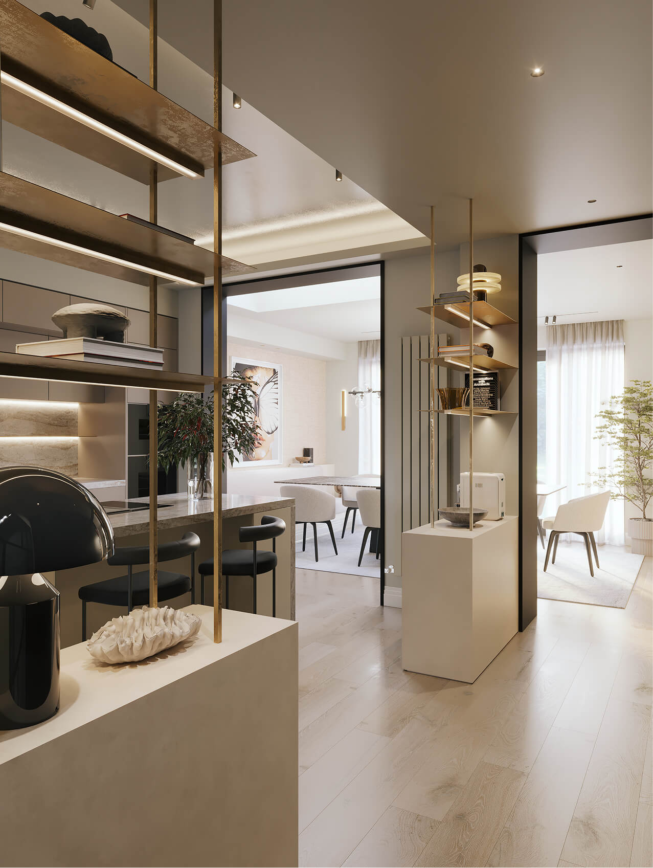 A 1930s Dutch home reimagined for a young couple, where a sculptural kitchen anchors a bold new layout—merging boutique elegance with preserved historic character, resulting in a balanced, and mature contrast.